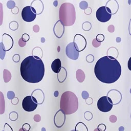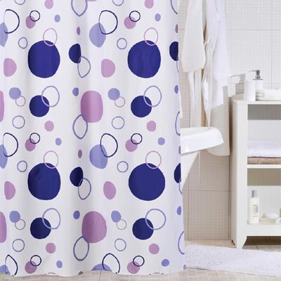 Занавеска из 100% полиэстера для ванны с 12 металлическими люверсами под кольца. Штора обработана специальной пропиткой, отталкивающей воду.