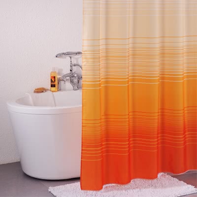 Занавеска из 100% полиэстера для ванны с 12 металлическими люверсами под кольца. Штора обработана специальной пропиткой, отталкивающей воду.