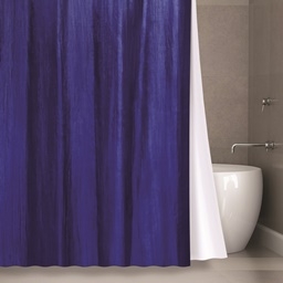 Двухслойная штора для ванны с 12 металлическими люверсами под кольца. Снаружи цветная штора из органзы, внутренняя штора - клеенка ПВХ для защиты от влаги. Цвет: сама штора темно-синяя/клеенка белая полупрозрачная.
