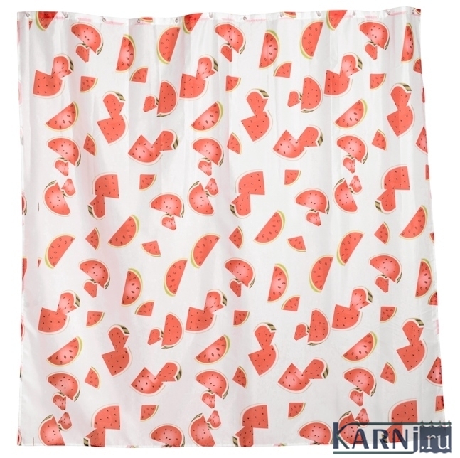 Занавеска из 100% полиэстера для ванны с 12 металлическими люверсами под кольца. Материал шторы обработан гидрофобной пропиткой, отталкивающей воду. Внизу по всей длине вшит шнур-утяжелитель.
