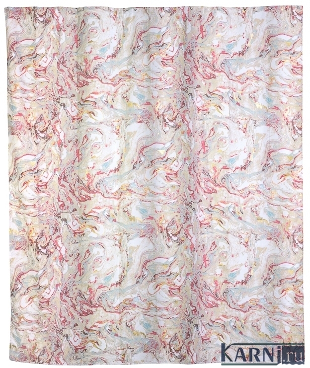 Занавеска из 100% полиэстера для ванны с 12 металлическими люверсами под кольца. Материал шторы обработан гидрофобной пропиткой, отталкивающей воду. Внизу по всей длине вшит шнур-утяжелитель.