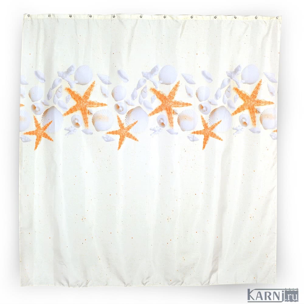 Занавеска из 100% полиэстера для ванны с 12 люверсами под кольца. Штора обработана специальной пропиткой, отталкивающей воду. Внизу по всей длине вшит шнур-утяжелитель.